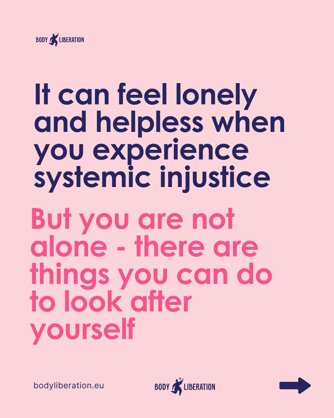 It can feel lonely and helpless when you experience systemic injustice. But you are not alone – there are things you can do to look after yourself