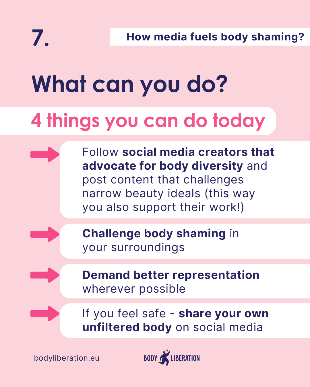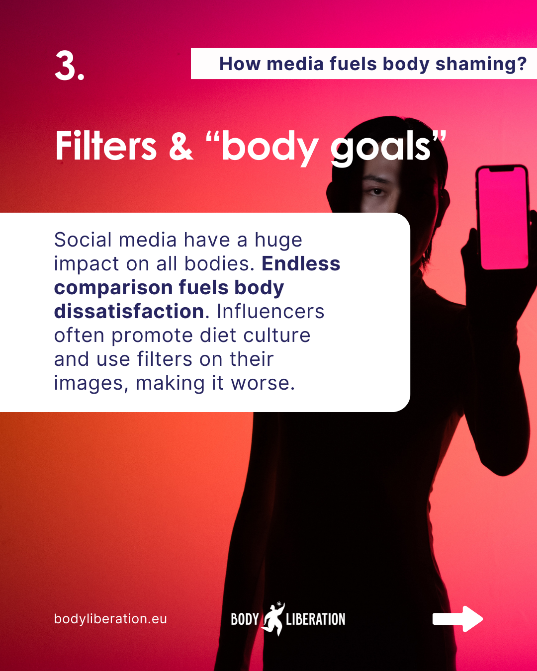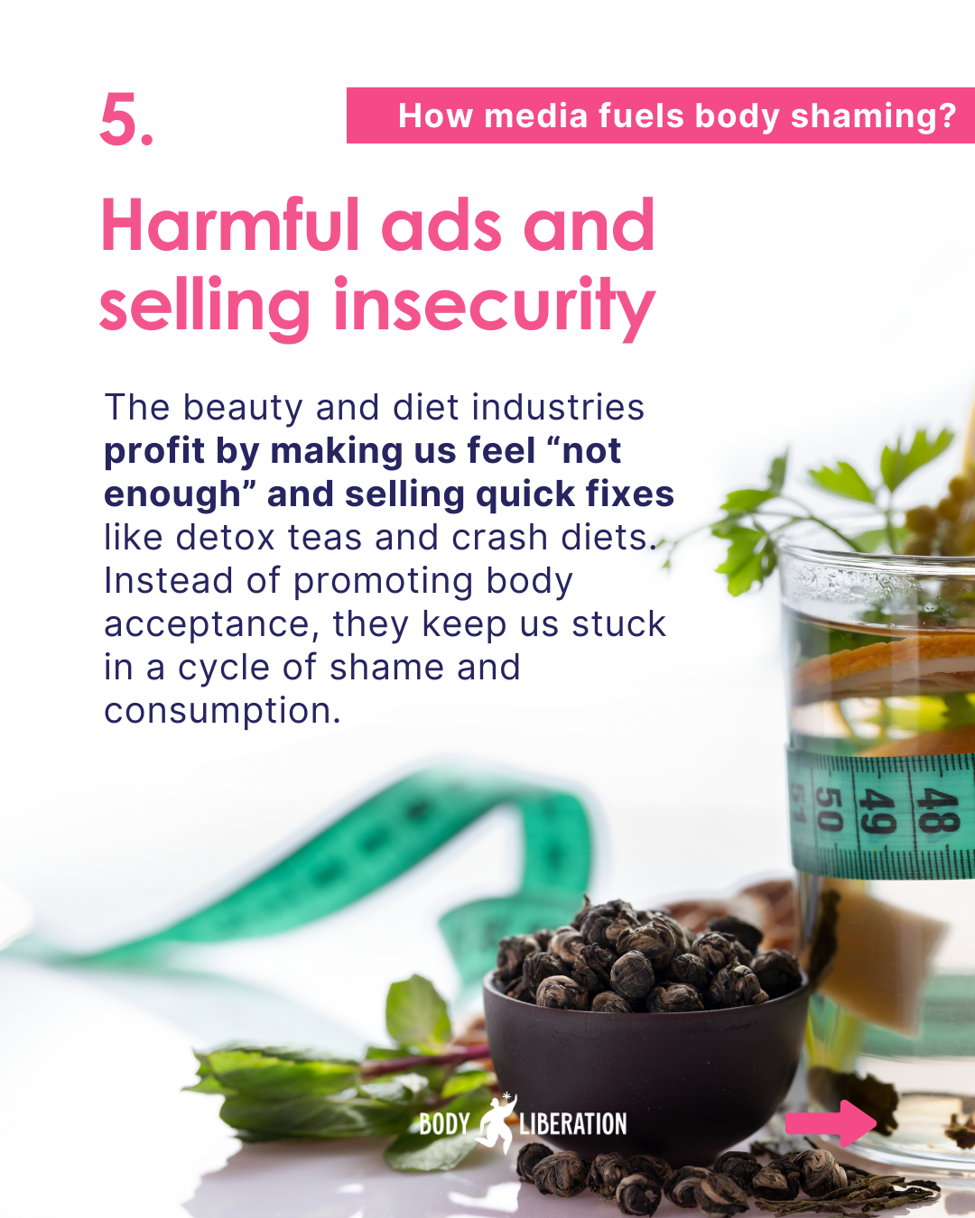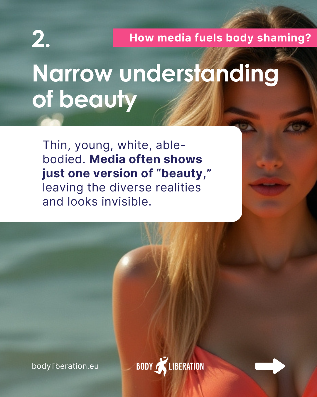 In media, body shaming shows up through unrealistic beauty standards, negative portrayals, and constant pressure to “look perfect.” How does media fuel such attitudes?